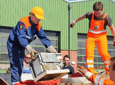 Rainer Heisterkamp, Egon Weikamp, Robert Liebrand und Jörg Telaar arbeiten mit einer von Thomas Klein-Ridder vom Malteser Hilfsdienst entwickelten speziellen Software, mit der Patienten elektronisch erfasst werden können - Foto: Feuerwehr der Stadt Bocholt