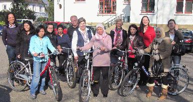 Der "Inner Wheel"-Club Bocholt-Borken und Fahrradhändler Friedhelm Heumer spendeten fünf Fahrräder, um das Migrationsprojekt von VHS, Fabi, Awo und Stadt Bocholt zu untertstützen. (Foto: Stadt Bocholt)