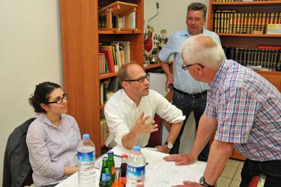 Besuch der Partnerstadt Belgisch Bocholt, ‚ auf dem Bild ganz Links Bürgermeister Jos Claessens. Anne Liesmann neunte von links und ganz rechts Albrecht Liesmann Reiseleiter der Gruppe. (Foto: A. Liesmann)