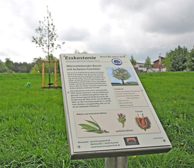 Zum Jahresbaum gehört natürlich auch ein Schild, auf dem der Baum detailliert beschrieben wird