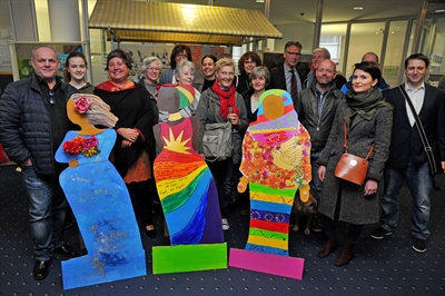 Künstler, Organisatoren und einige Werke gab es am 5. April im Rahmen der Pressekonferenz zum 11. Kunstcarrée in der Stadtsparkasse Bocholt zu sehen