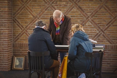 Luci Aversteeg (Goldschmiedin), Jan Ubels (Uhrenschmied), Praktikant von Luci und Jan Cas, Jule Wanders, Rainer Heeke (Buchhändler), Maria Neumann (Restauratorin), Klaus und Peter Koenen (Experten für Gemälde und Zinn, Zink) beurteilten im Herding-Gebäude am 20. April 2018 alte Erbstücke und Dachbodenfunde