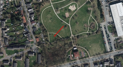Jeder, der einen "grünen Daumen" hat oder bekommen will, kann demnächst im Klostergarten auf dieser Fläche (Pfeil) Obst und Gemüse anpflanzen. (Grafik: Stadt Bocholt)