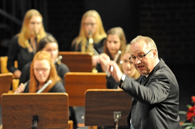 Das Jugendblasorchester der Musikschule Bocholt-Isselburg tritt beim Muttertagskonzert am 6. Mai 2018 unter der Leitung von Bodo Biermann auf