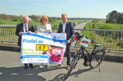Freuen sich, wenn die B 67 am 6.5. autofrei ist - Bocholts Bürgermeister Peter Nebelo, Umweltreferentin Angela Theurich und Stadtbaurat Daniel Zöhler (v.l.n.r.)