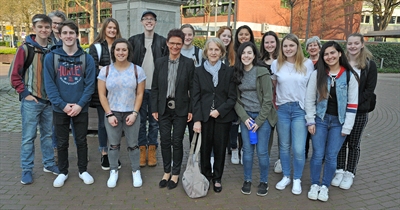 Am Montag, 8.4.2019, empfing Bocholts erste stellvertretende Bürgermeisterin Elisabeth Kroesen eine 13köpfige Schülöerghruppe der Canton High School aus den USA - Foto: Bruno Wansing, Stadt Bocholt