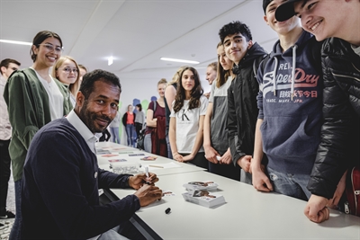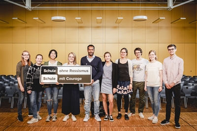 Teilnehmer der AG „Schule gegen Diskriminierung“ mit ihrem Paten, Daniel Thioune (Fünfter von links).