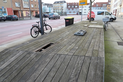 Die Holzdecks am Rosenplatz sind schon lange marode (hier ein Foto aus dem Jahr 2019). Nun werden sie saniert.