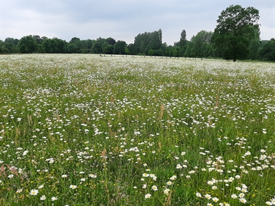 Blütenpracht: Auf der städtischen Wiese im Bereich Gartlage stehen die Margeriten dicht an dicht.