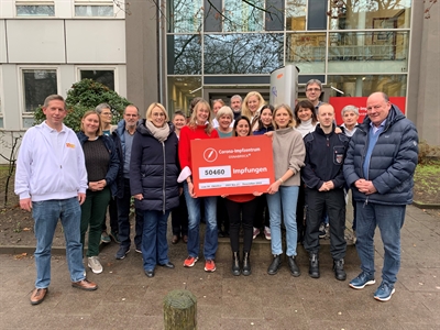 Zum Abschluss ein Foto mit der Oberbürgermeisterin: Die Impfzentren und der Impfbus konnten nur wegen des Engagements der vielen Helferinnen und Helfer so gut funktionieren.