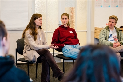 Jugendliche diskutieren beim Workshop der städtischen Freiwilligendienste zum Thema Frieden im Haus der Jugend