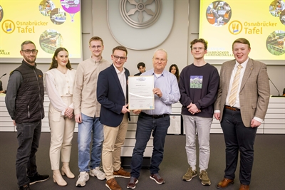 Hermann Große-Marke, 1. Vorsitzender der Osnabrücker Tafel, (Dritter von rechts) erhält die Auszeichnung des Jugendparlaments.