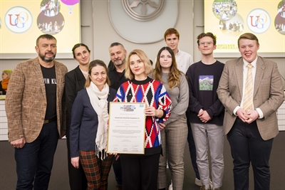 Vertreterinnen und Vertreter der Ukrainischen Gemeinde Osnabrück erhalten die Jugendmedaille.