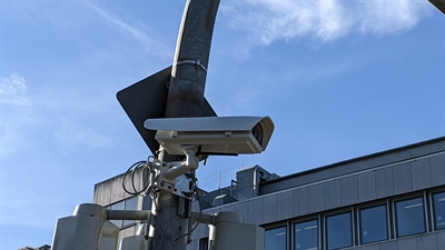 An 22 Standorten in der Osnabrücker Innenstadt bietet die Stadt Osnabrück seit März 2024 kostenloses WLAN an. Wie hier am Adolf-Reichwein-Platz weisen Hinweisschilder oder Aufkleber auf den Dienst "OSNA Hot Spot" hin.