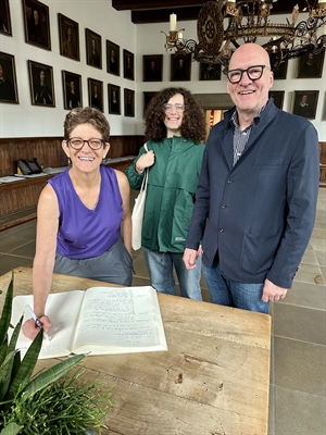 Von links: Leslie Mayro, Bruno Fleischman Mayro und Erster Stadtrat Wolfgang Beckermann.