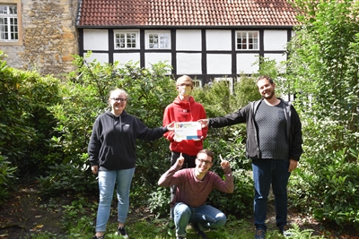 Präsentieren stolz den neuen „Grashüpfer“: Andrea Hein, Leitung Umwelt-bildungszentrum, Norbert Niedernostheide, Museumsdirektor und Antonius Fahnemann, Vorsitzender des Vorstandes der Haarmann-Stiftung.