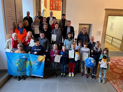 Bürgermeister Uwe Görtmöller übergab den Schulen, die sich am Umwelt-Projekt "Schalt mal ab!" beteiligten ihre Urkunden im Rathaus.