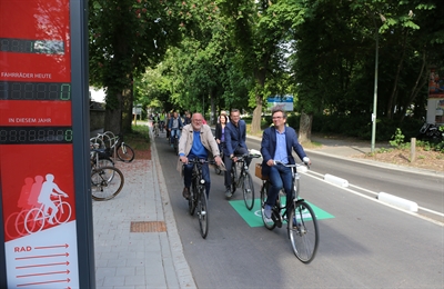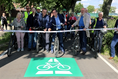 Stadtbaurat Frank Otte gab am Mittwoch den ersten Abschnitt des Radschnellweges Osnabrück – Belm für die Radfahrer frei.
