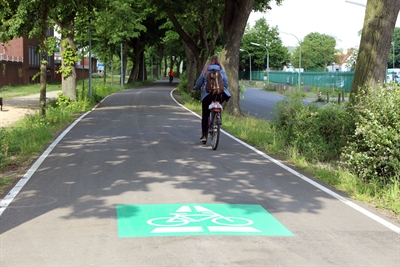 Eine breite, ebene Strecke: Das sind die Merkmale, die einen Radschnellweg ausmachen. Auf dem nun fertiggestellten Teilstück im Bereich Kalkrieser Weg ist das gut zu erkennen.