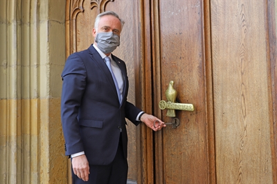 Seit dem 17. März war das Osnabrücker Rathaus wegen der Corona-Pandemie geschlossen. Oberbürgermeister Wolfgang Griesert freut sich, dass es ab dem 5. Mai wieder eingeschränkt für Besucherinnen und Besucher geöffnet wird.