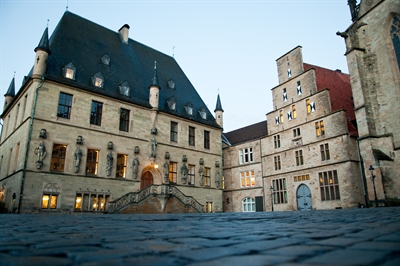 Auf dem Markt vor dem historischen Rathaus in Osnabrück werden am 25. Oktober Tausende Sängerinnen und Sänger erwartet.