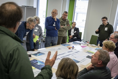 Arbeiten am Projekt „Urbaner Freiraum im (Klima-)Wandel“ – Freiraumentwicklung in der Stadt Osnabrück: Projektleiterin Andrea Hartz von der agl Hartz-Saad-Wendl, Stadtbaurat Frank Otte, stellvertretender Projektleiter Sascha Saad von der agl Hartz-Saad-Wendl, Christiane Balks-Lehmann, Fachdienstleiterin Fachdienst Naturschutz und Landschaftsplanung und Wiebke Holste, Sachbearbeiterin im Fachdienst Naturschutz und Landschaftsplanung und Projektleitung „Urbaner Freiraum im (Klima)Wandel“.