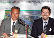 Oberbürgermeister Frank Baranowski (li., Gelsenkirchen) und Bürgermeister Dr. Uli Paetzel (Herten) freuen sich über den einstimmigen Ratsbeschluss. (Foto: M. Schulmann)