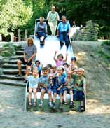 Großer Jubel herrschte bei den kleinen Besuchern des Spielplatzes im Katzenbusch, als Herbert Werner (o.re.) gemeinsam mit Dr. Claudia Fründ (o.Mi.) und Ilka Koelsch (o.li.) das Gelände offiziell übergaben.