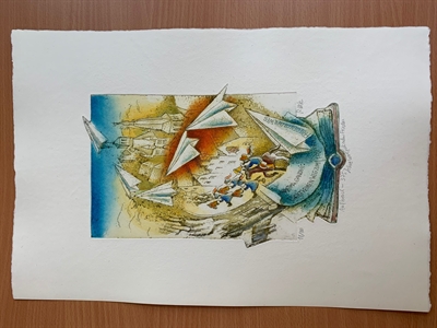 Auf Reinhard Klinks Radierung „Aufbruch – 375 Jahre Westfälischer Frieden“ sind unter anderem das historische Rathaus, die Marienkirche, der Dom und das Steckenpferdreiten zu sehen.