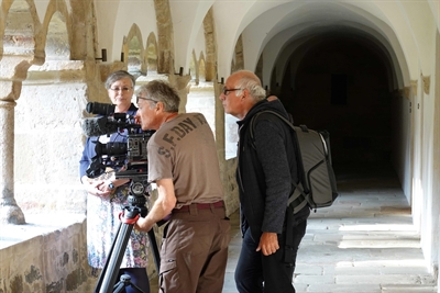 Claudia Junk, Remarque-Zentrum, bei den Dreharbeiten im vergangenen Jahr mit Kameramann Sven Giebel und Autor Heinz Cadera.