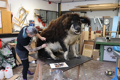 Erste Anprobe der Haut auf die Körperform – bis sie perfekt passt, muss die Form noch passgenau nachmodelliert werden.