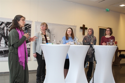 Wie sichtbar sind Frauen in den Religionen? Darüber diskutierten im Forum am Dom bereits 2018. v.l.: Jane Vernon, Lore Julius, Mascha Radbil und Silvia Horsch mit Moderatorin Regina Wildgruber.