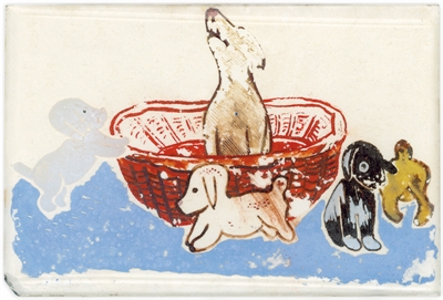 Felix Nussbaum: Hundekorb mit Welpen, Hinterglasbild, um 1942, Leihgabe von Brigitte Junk