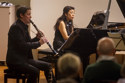 In der MKS NITE dreht sich alles um das Thema „Formen“. Das Foto zeigt Pierre-Yves Locher (Klarinette) und Chika Matsuhisa (Klavier).