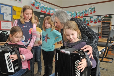 Ausprobieren ist bei den Schnupperstunden der Musikschule Bocholt-Isselburg angesagt. Hier versuchen sich Schülerinnen und Schüler am Akkordeon - Foto: Bruno Wansing, Stadt Bocholt