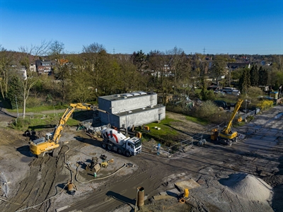 Auch in Essen, dem Hauptsitz der Emschergenossenschaft, hat der Emscher-Umbau zu einer Vielzahl an wasserwirtschaftlichen Baumaßnahmen geführt - so wie hier für ein Regenüberlaufbecken an der Berne (Grillostraße).