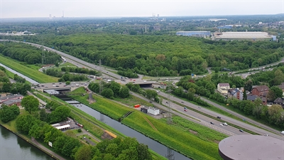 Die Emschergenossenschaft baut ein neues Pumpwerk direkt neben der alten Anlage – im Dreieck zwischen der B223, der A42 und der Emscher.