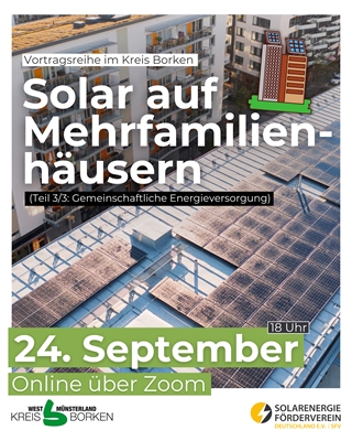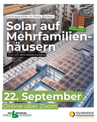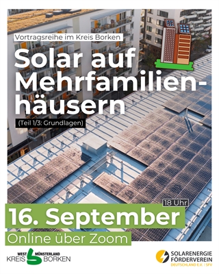 "Solartage im Kreis Borken": Vortragsreihe zu Photovoltaik auf Mehrfamilienhäusern, Teil 3