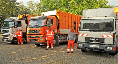 Der Sperrmüll wird in Bocholt mit drei Fahrzeugen abgefahren. Die Besatzung der drei Fahrzeuge von links: Jürgen Lensing, Matthias Becker und Alexander Gejl.