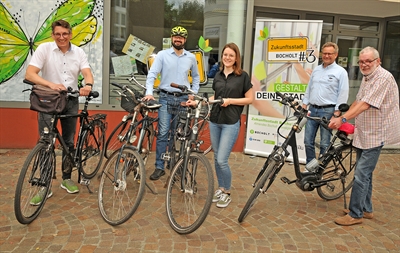 Sascha Terörde, Sebastian Borgert, Eva Overkamp, Thomas Ribbes und Peter Schmidt setzen auf mehr Radverkehr in Bocholt und wollen am 14. August 2021 zeigen, was alles möglich ist - Foto: Bruno Wansing, Stadt Bocholt