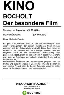 An jedem 2. und 4. Dienstag im Monat präsentiert die Bocholt Kulturverwaltung einen "besonderen Film" im Kinodrom Bocholt.