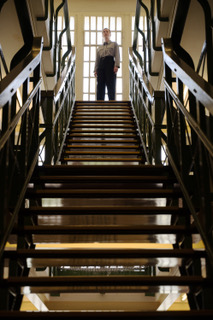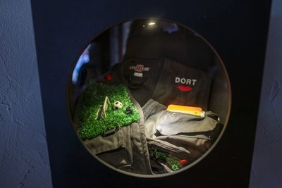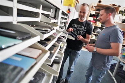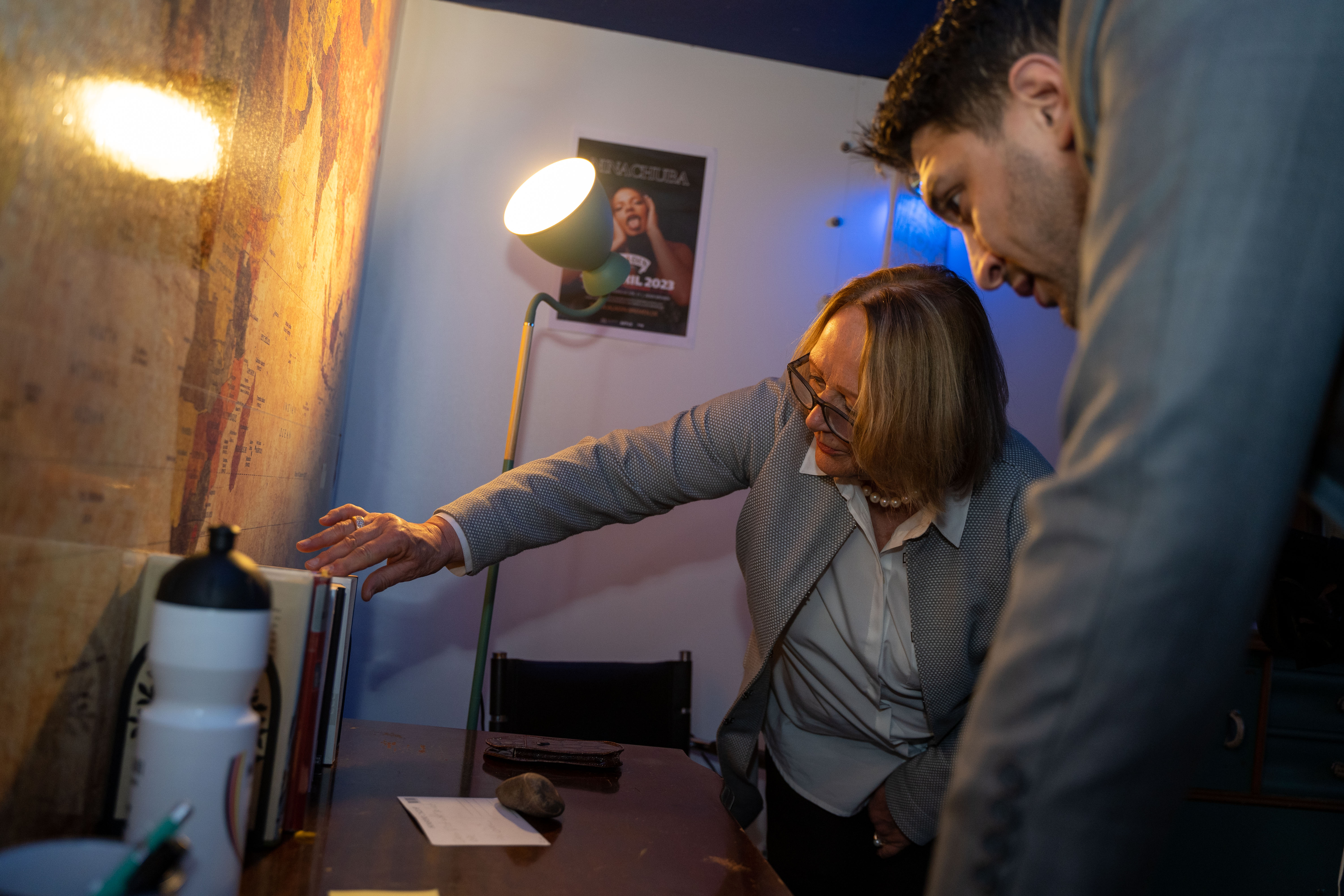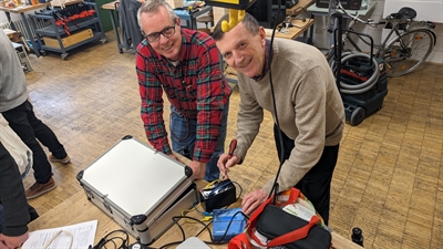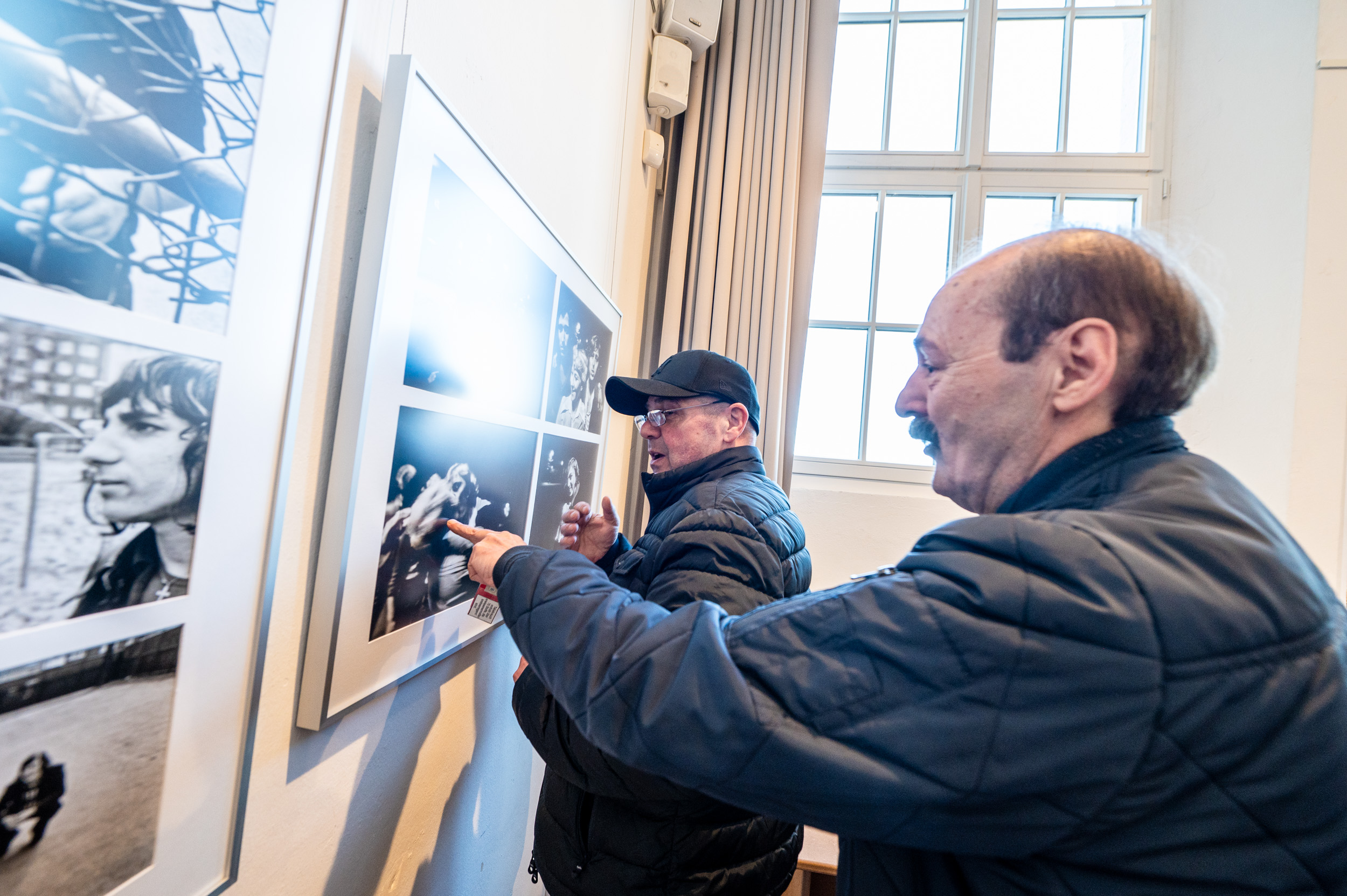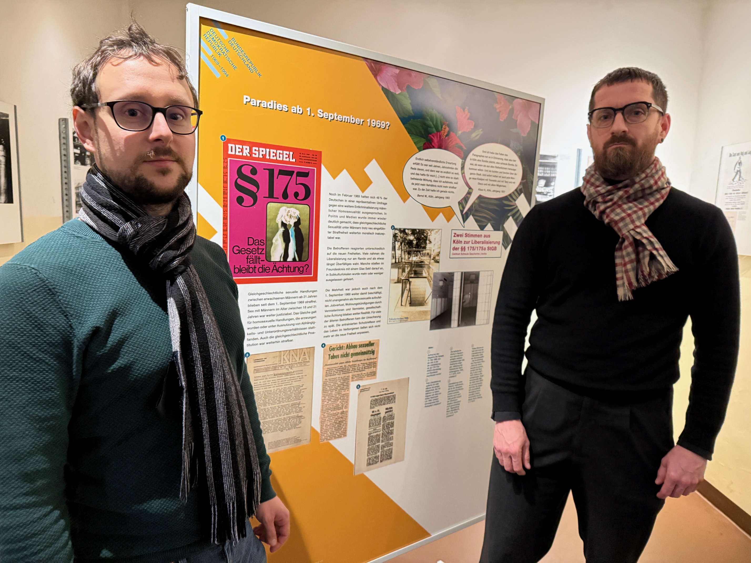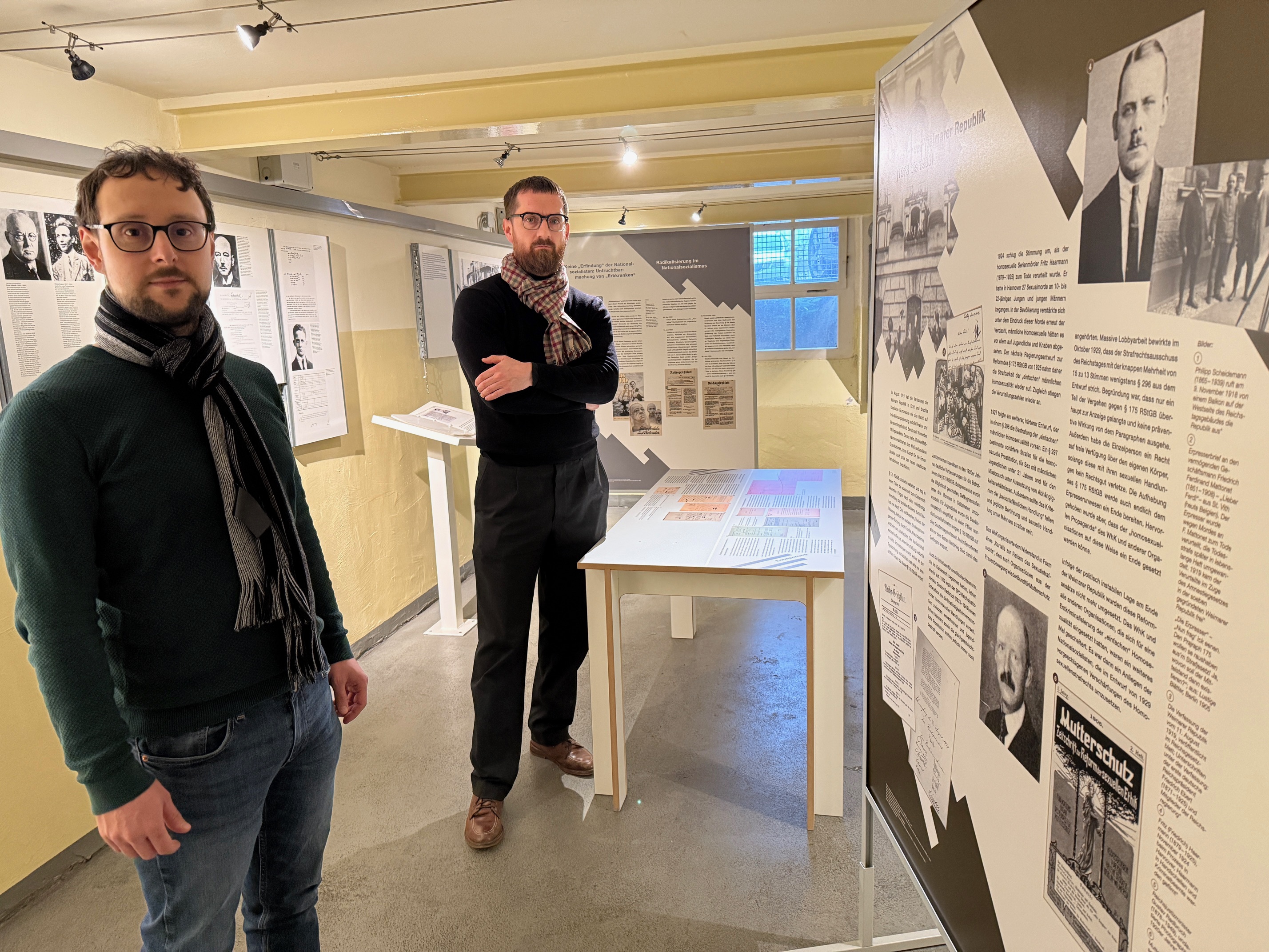 Paul Klammer vom SLADO und Dr. Markus Günnewig beim Aufbau in der Mahn- und Gedenkstätte Steinwache.