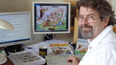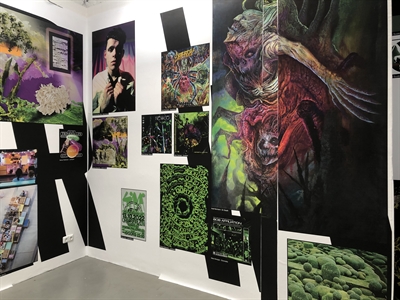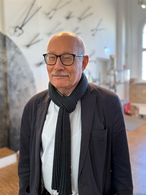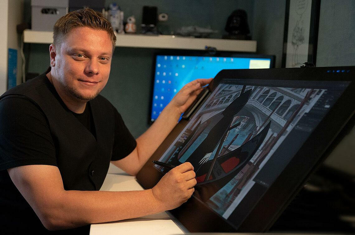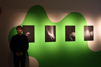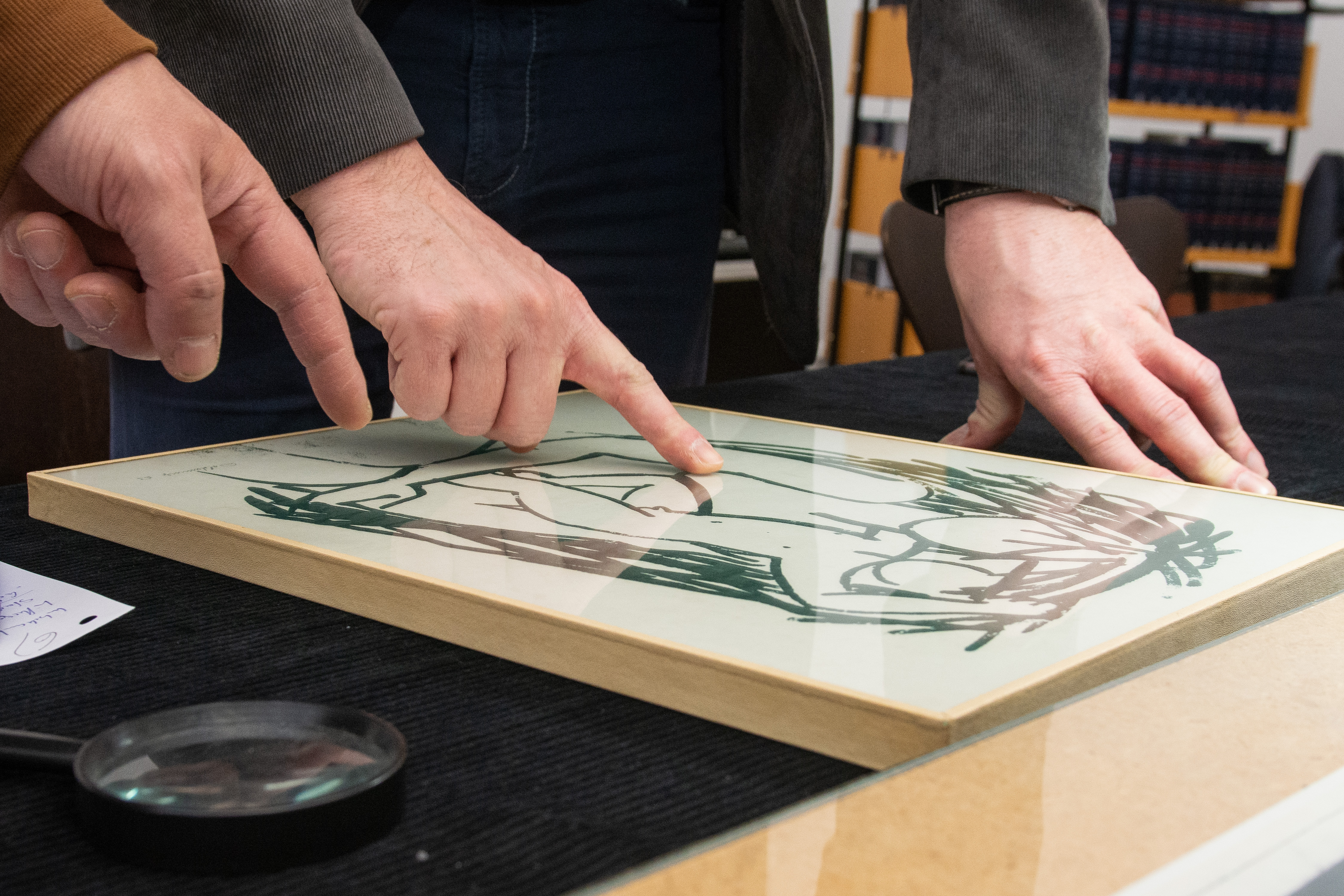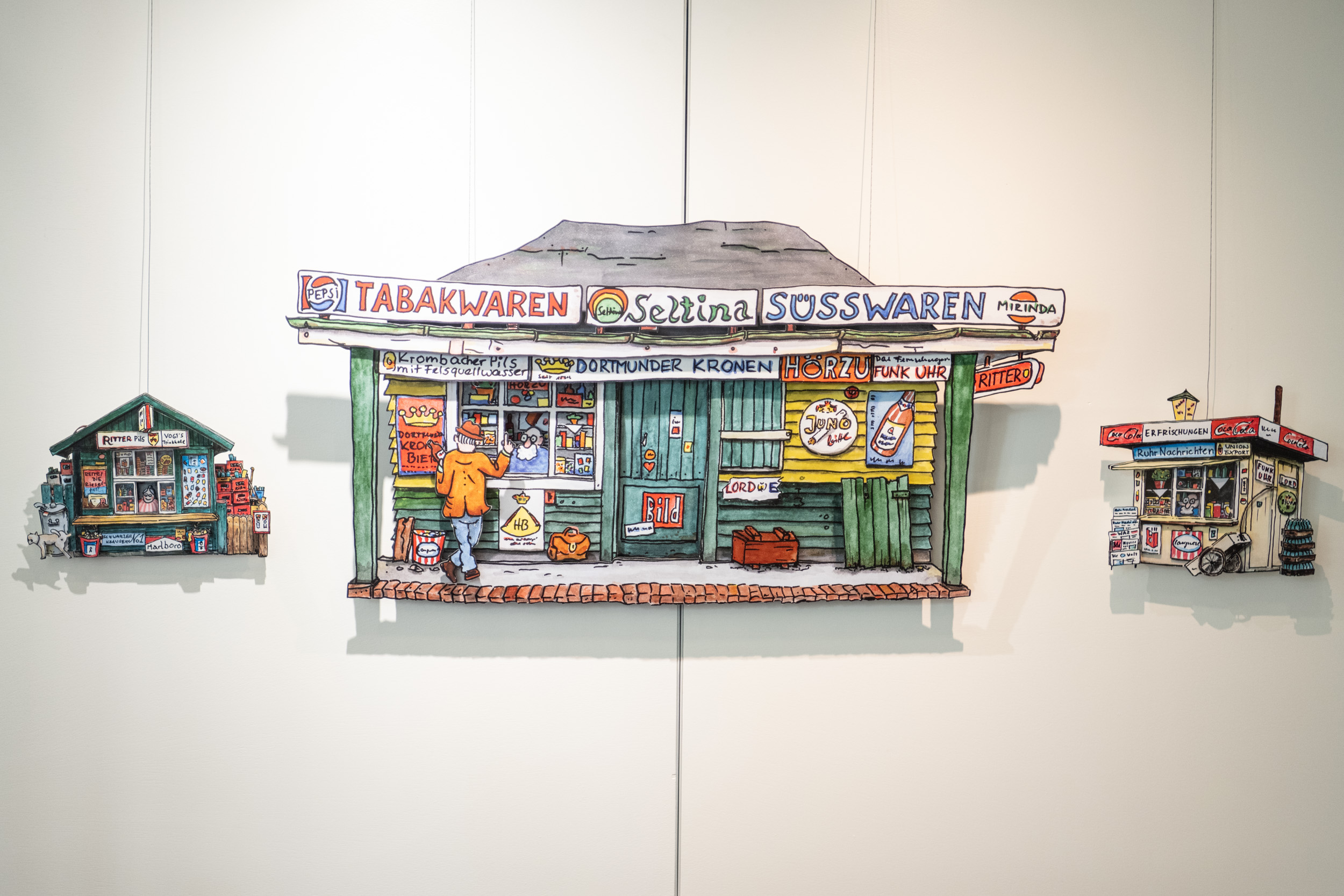 Nils Oskamp in der Ausstellung über seine Graphic Novel „Drei Steine“ in der JFS Eving.