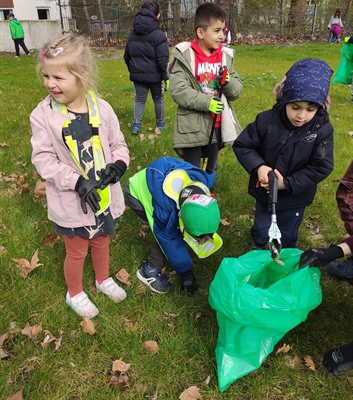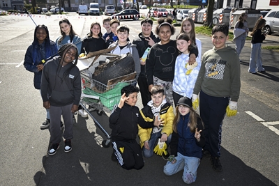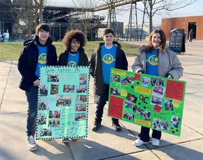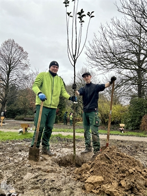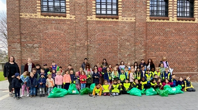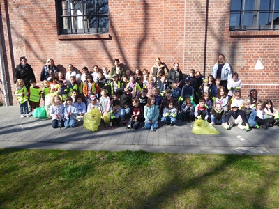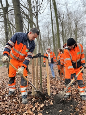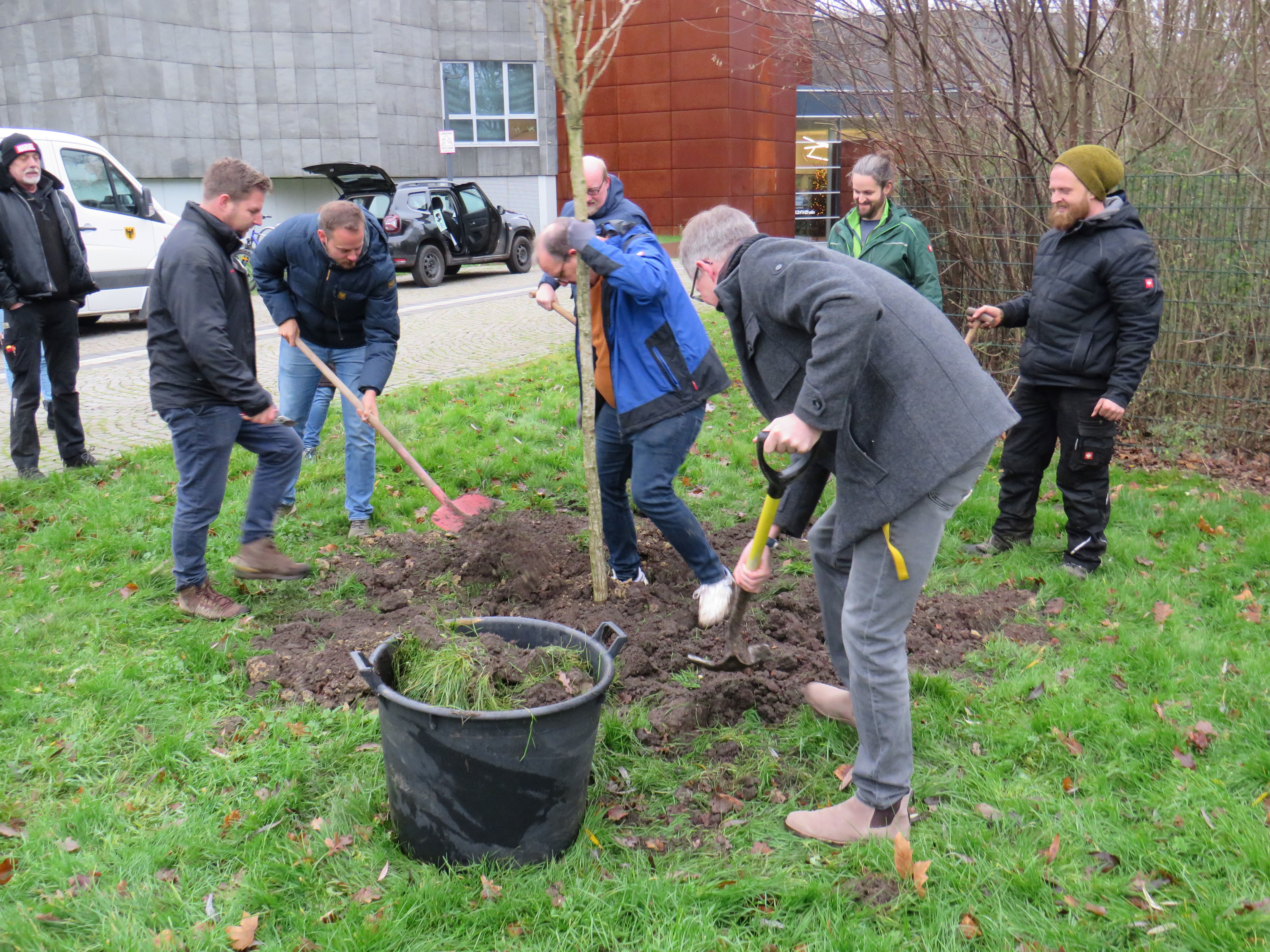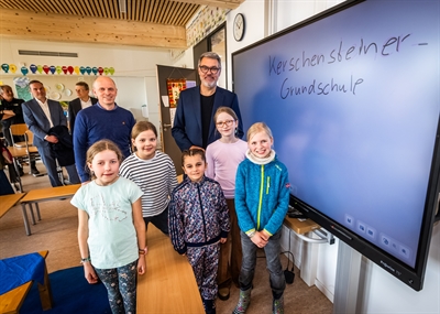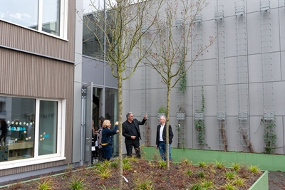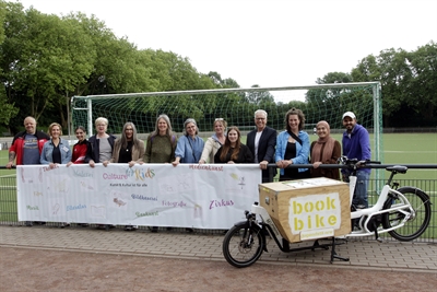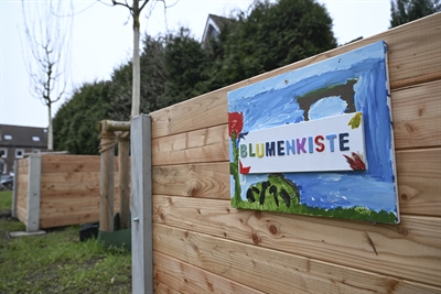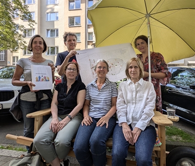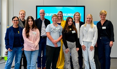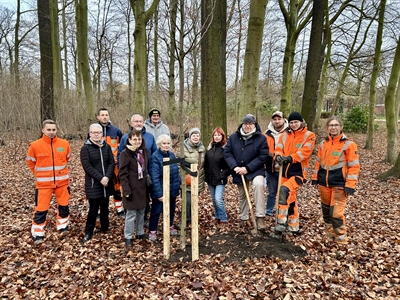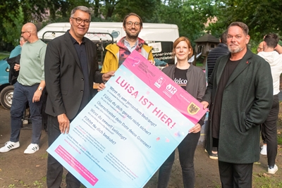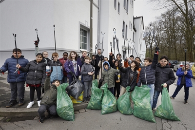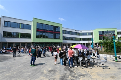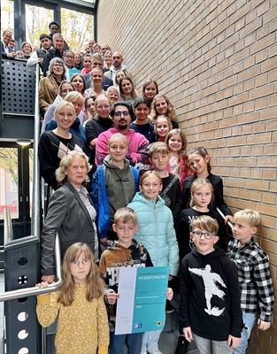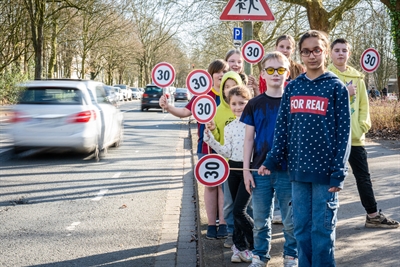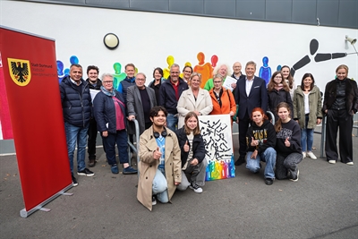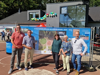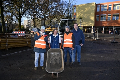 Bezirksbürgermeisterin Christiane Gruyters und Schüler*innen der benachbarten Schulen