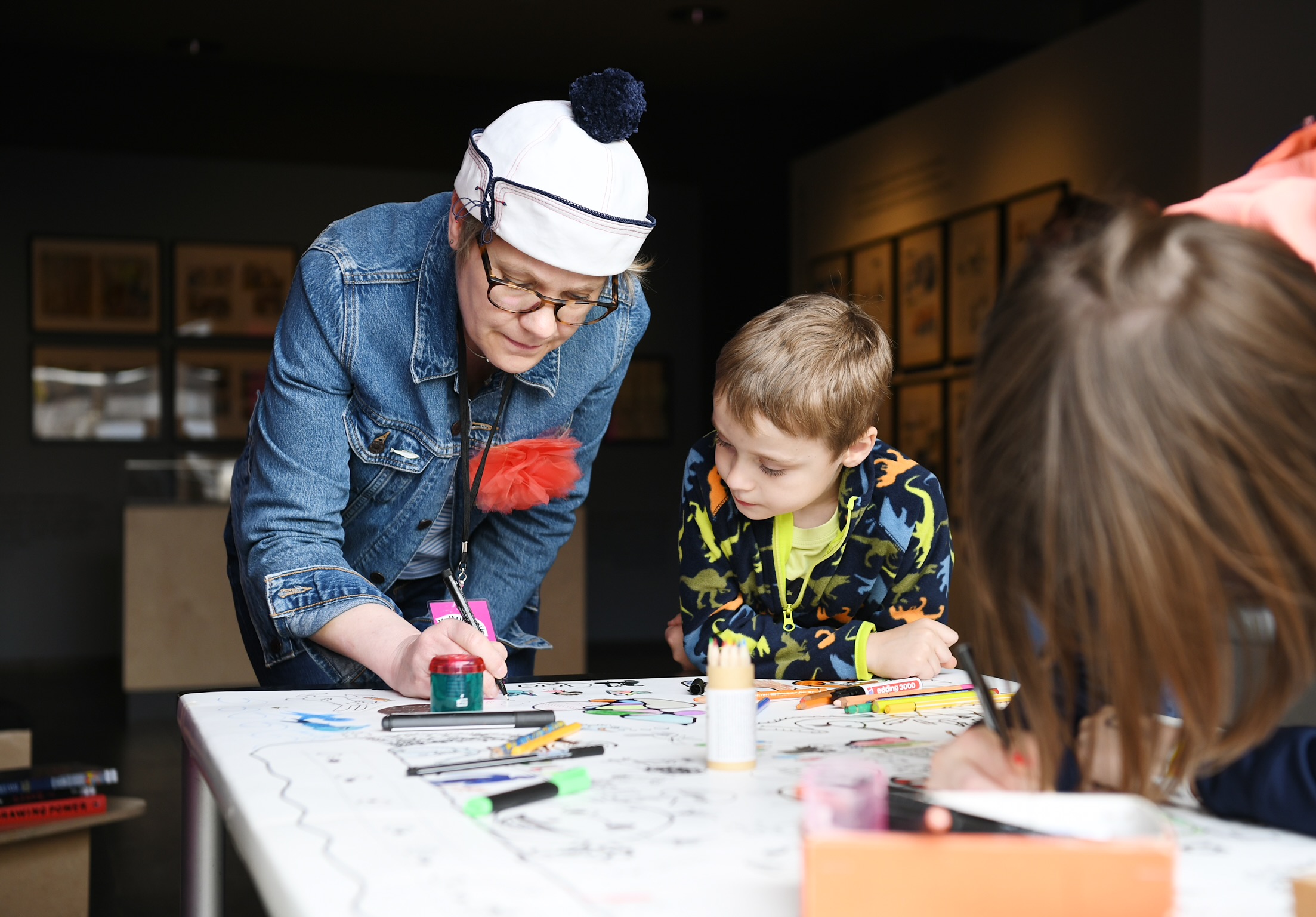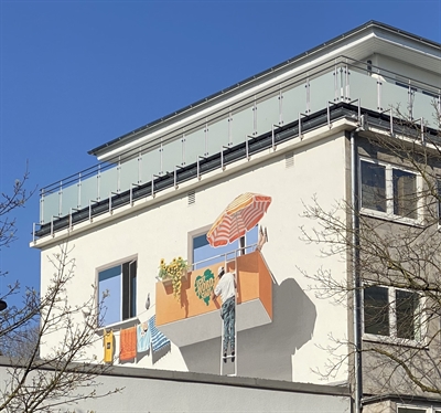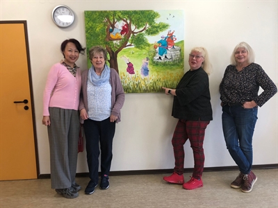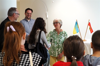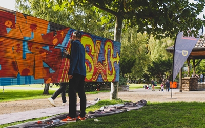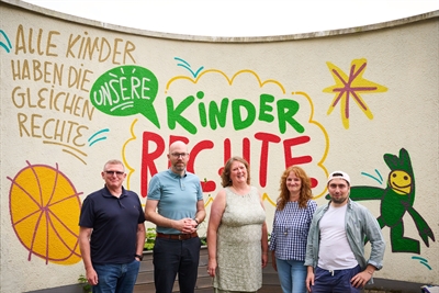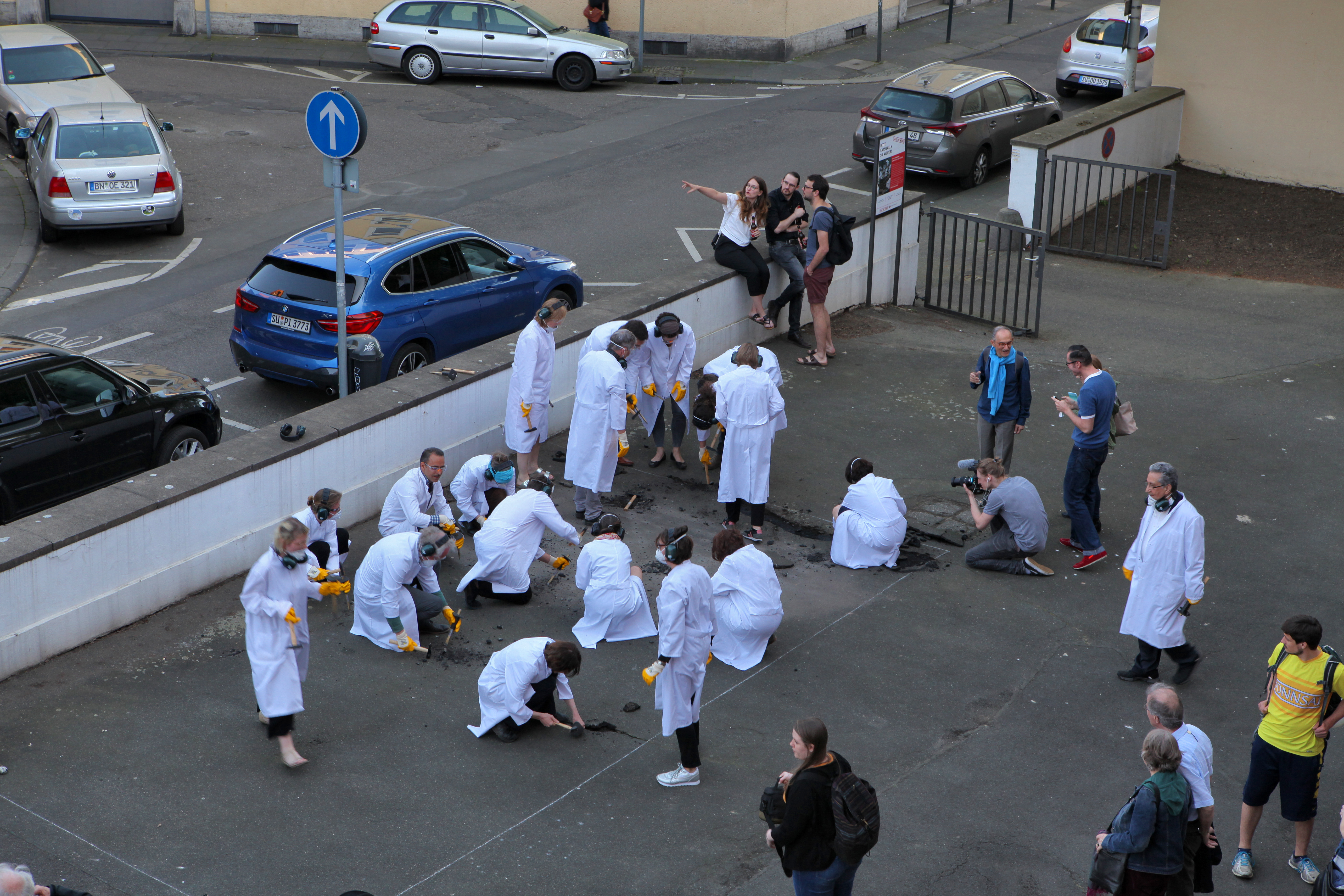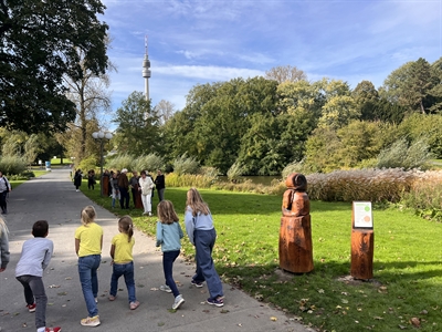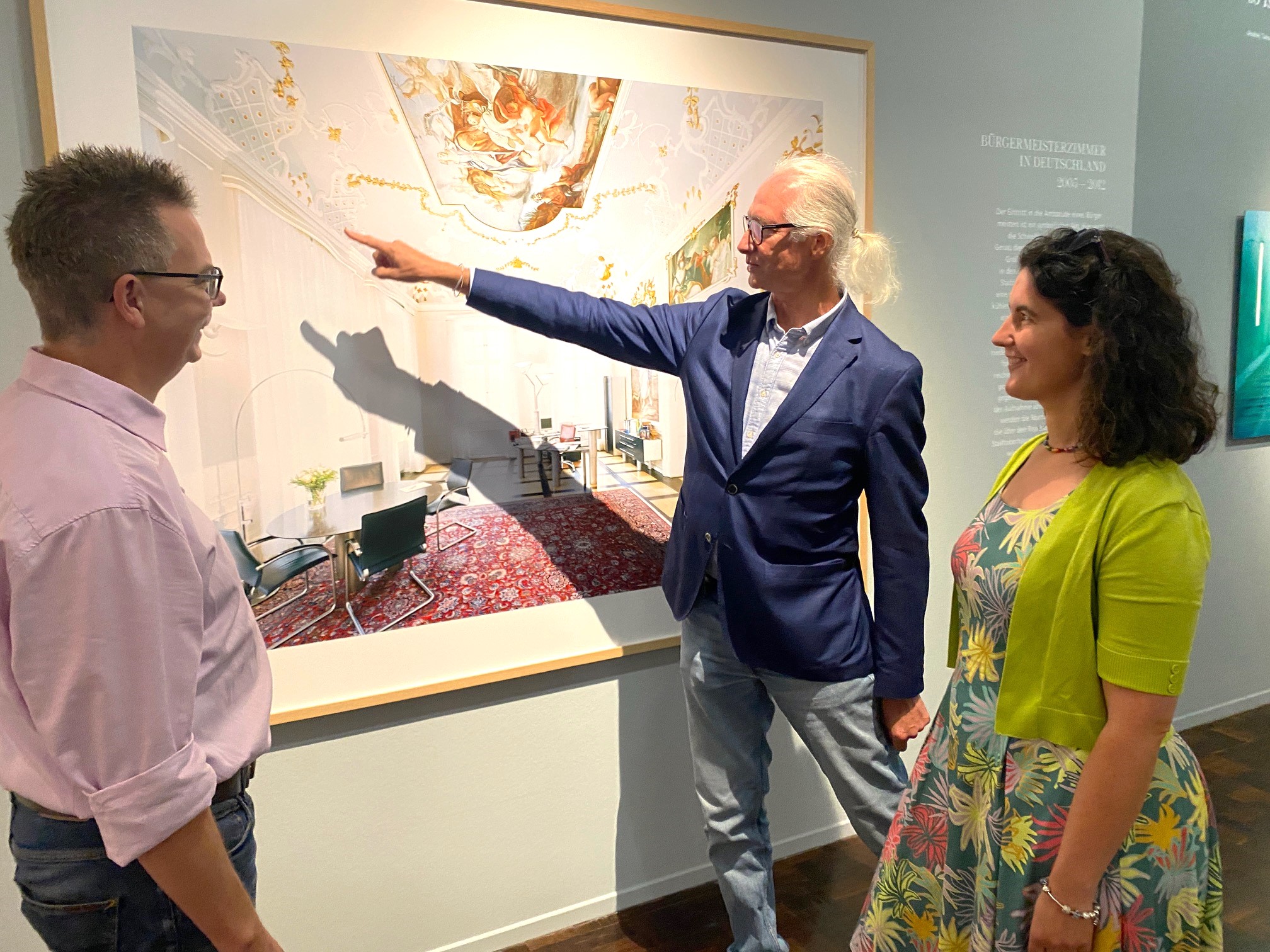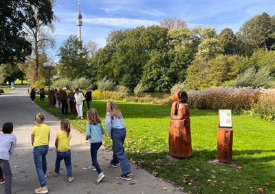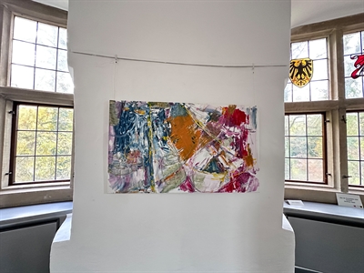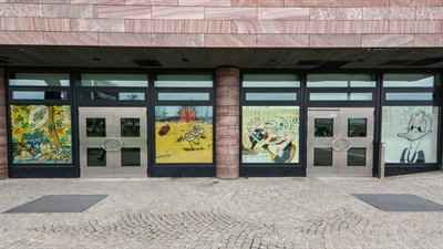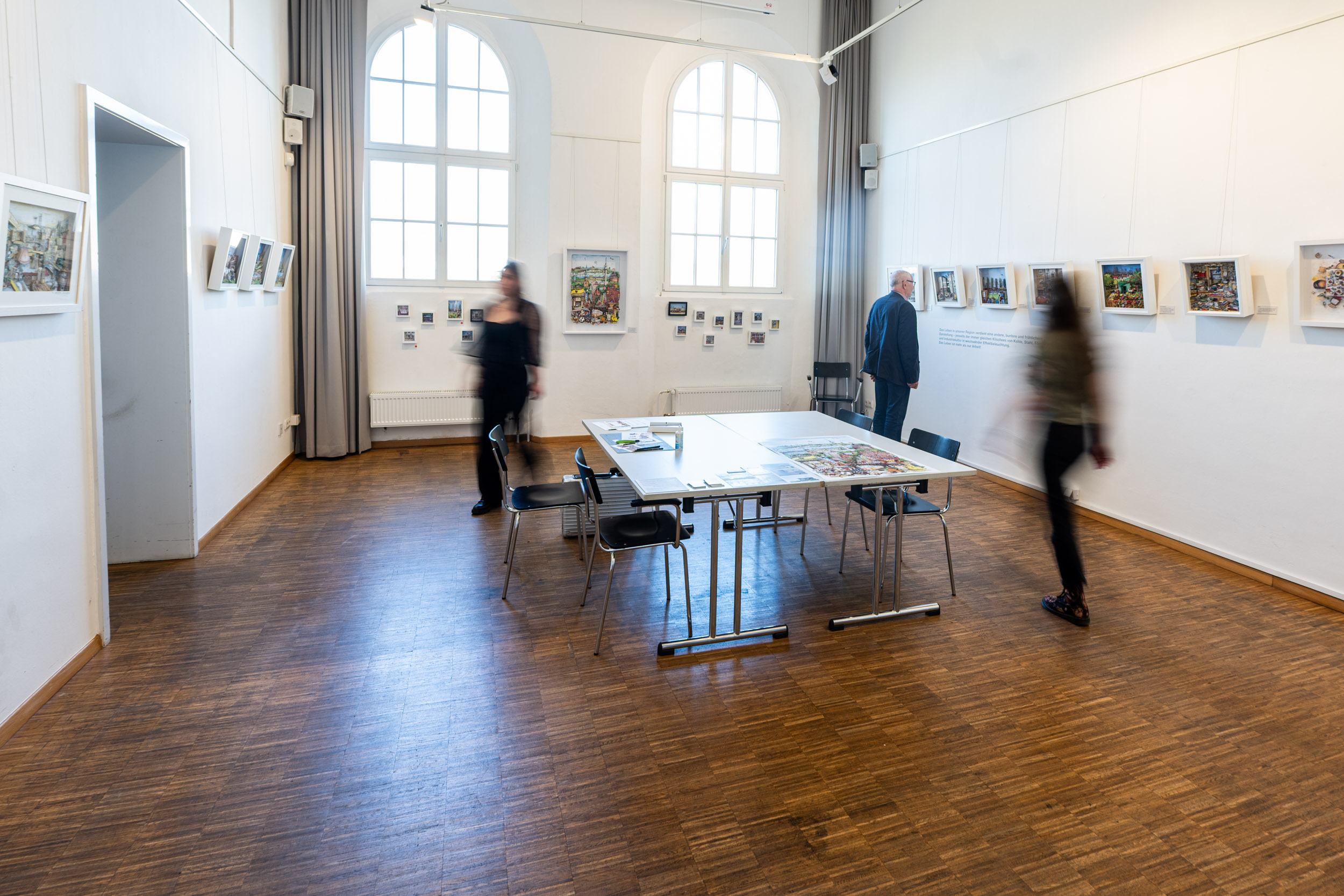 Eine Schulkasse malte gemeinsam mit den Künstlern Oliver Mark und Felix Peter Bilder passend zum Narrativ – nicht nur im Rathaus, sondern auch im Stadtgarten