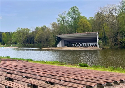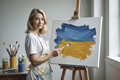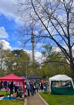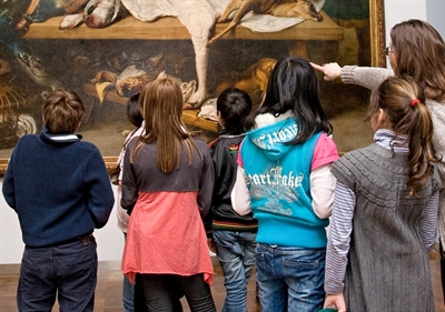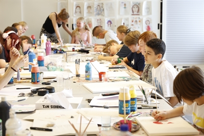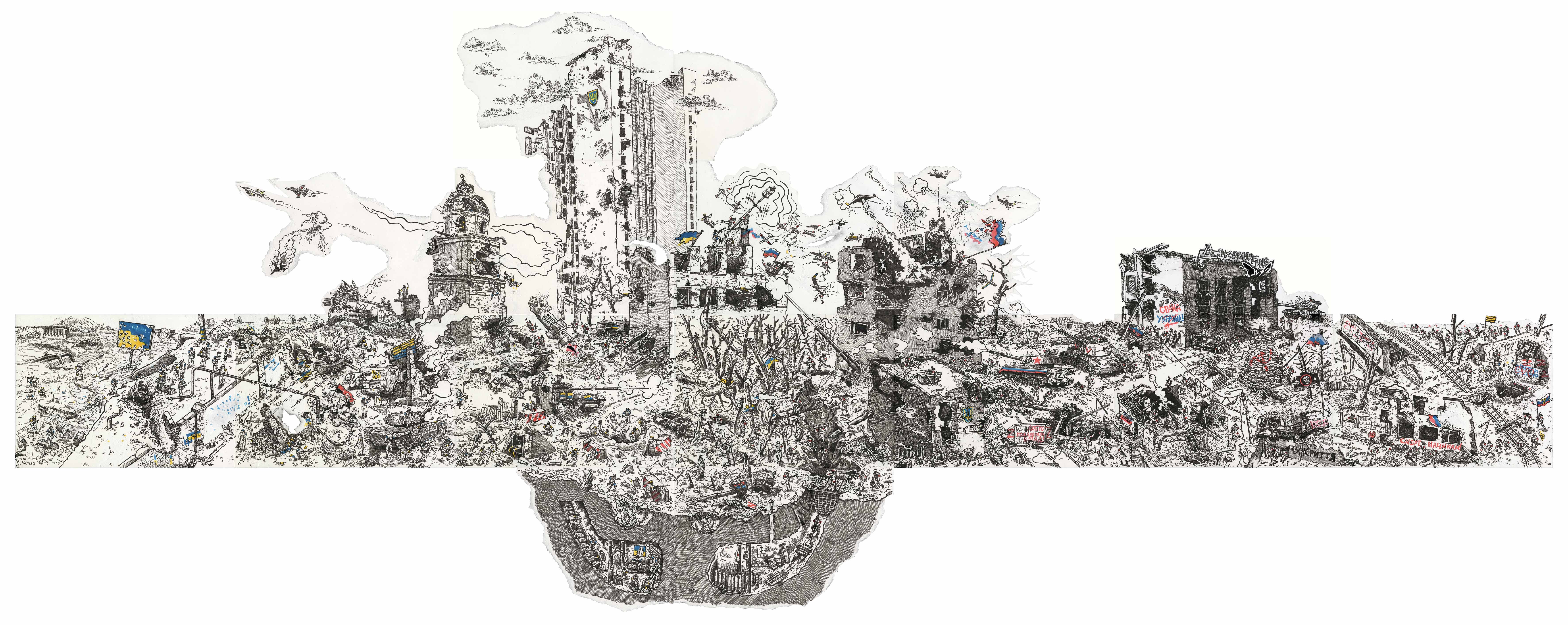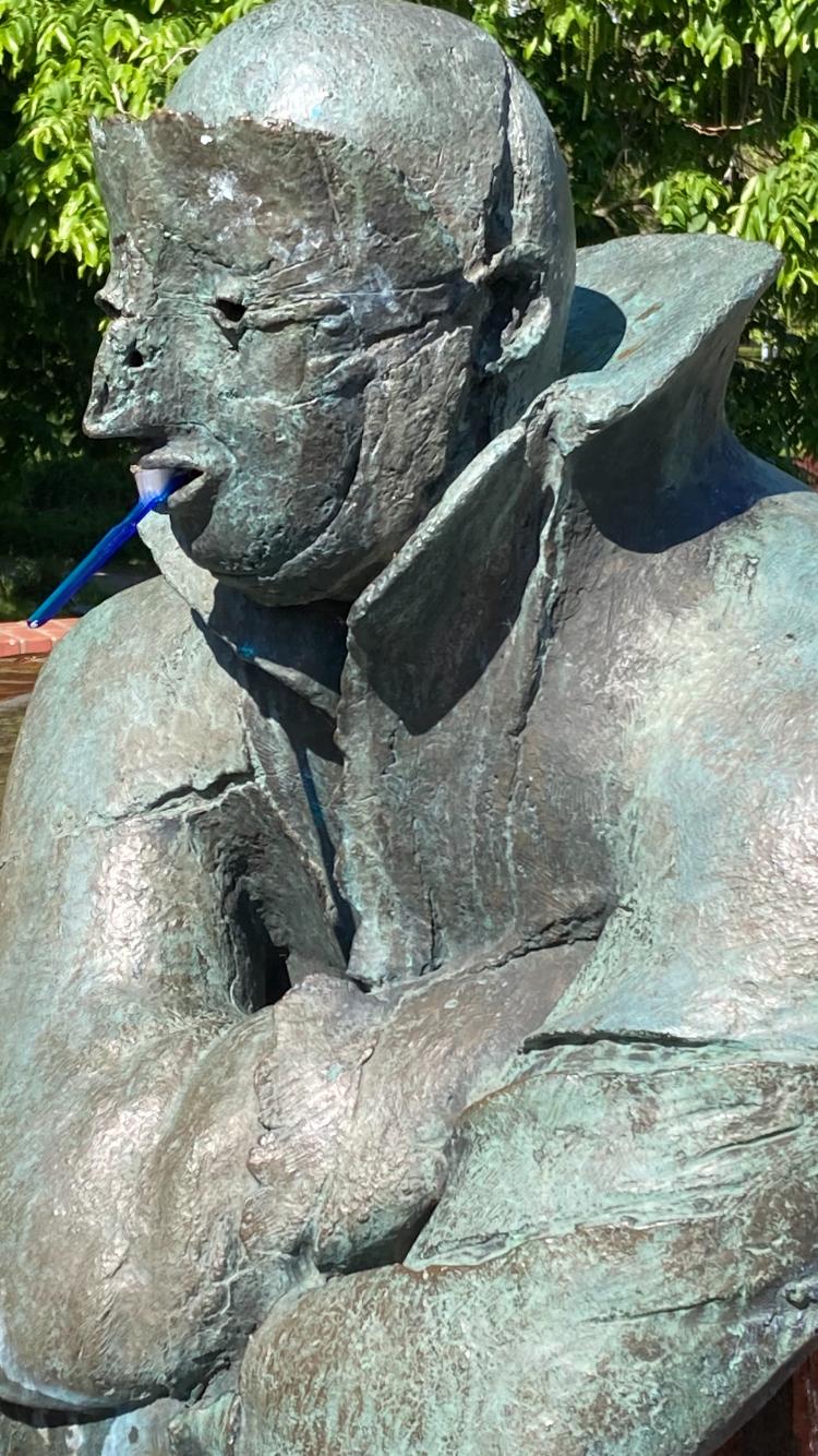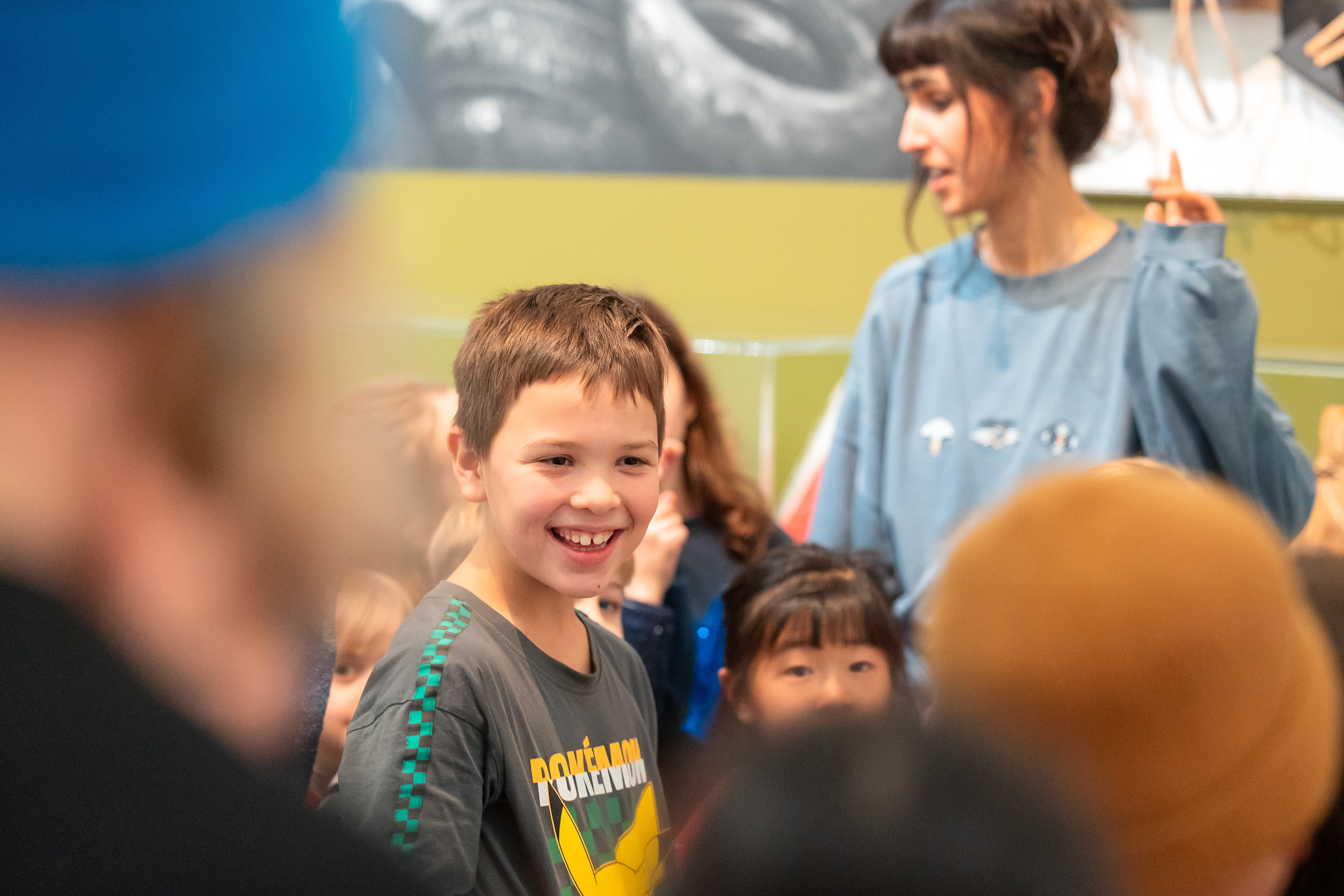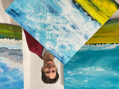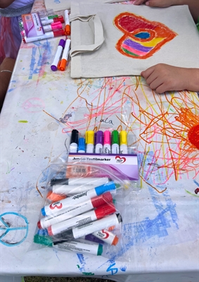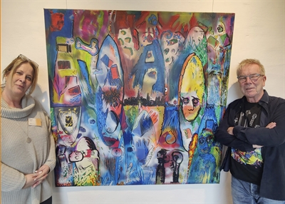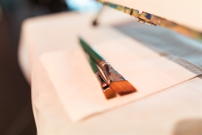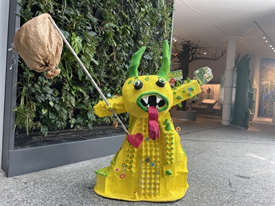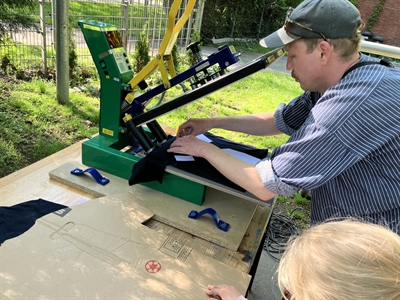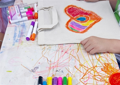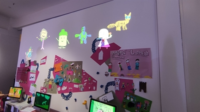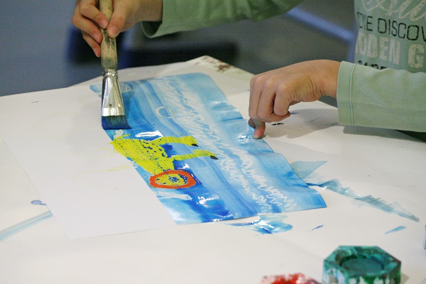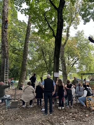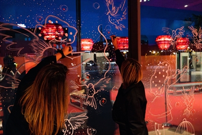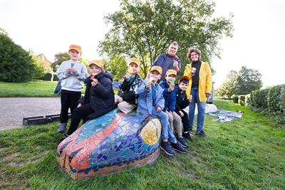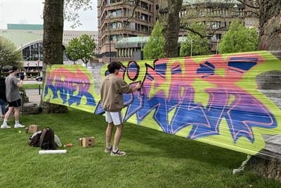 Eine Schulkasse malte gemeinsam mit den Künstlern Oliver Mark und Felix Peter Bilder passend zum Narrativ – nicht nur im Rathaus, sondern auch im Stadtgarten