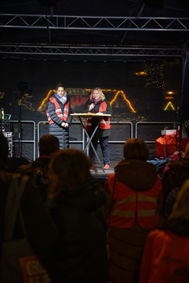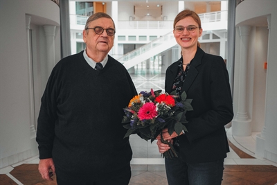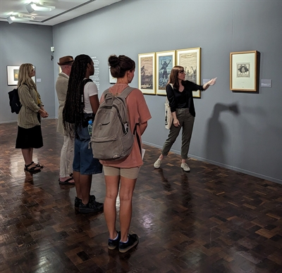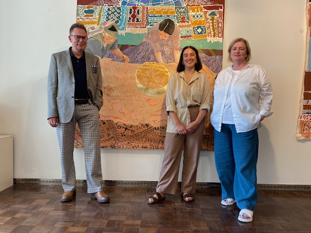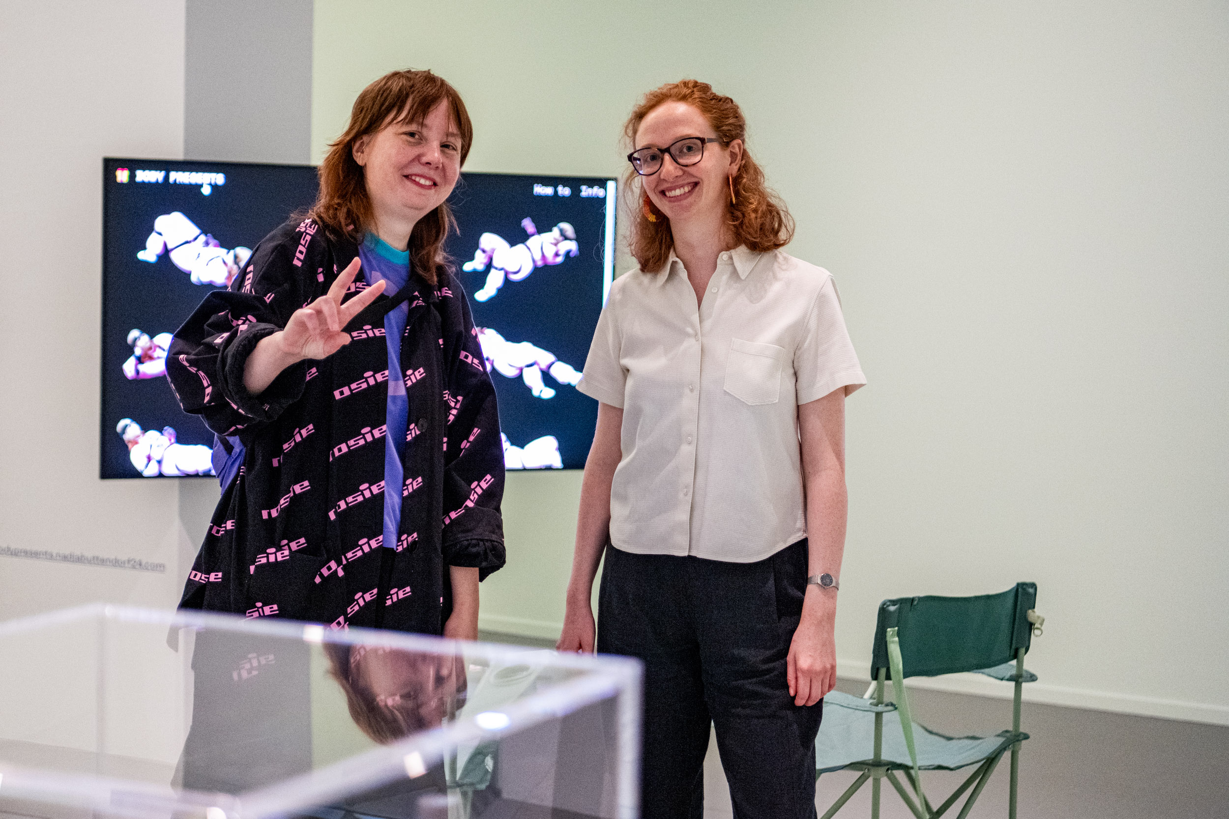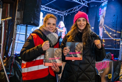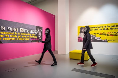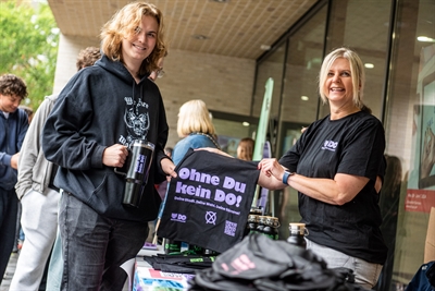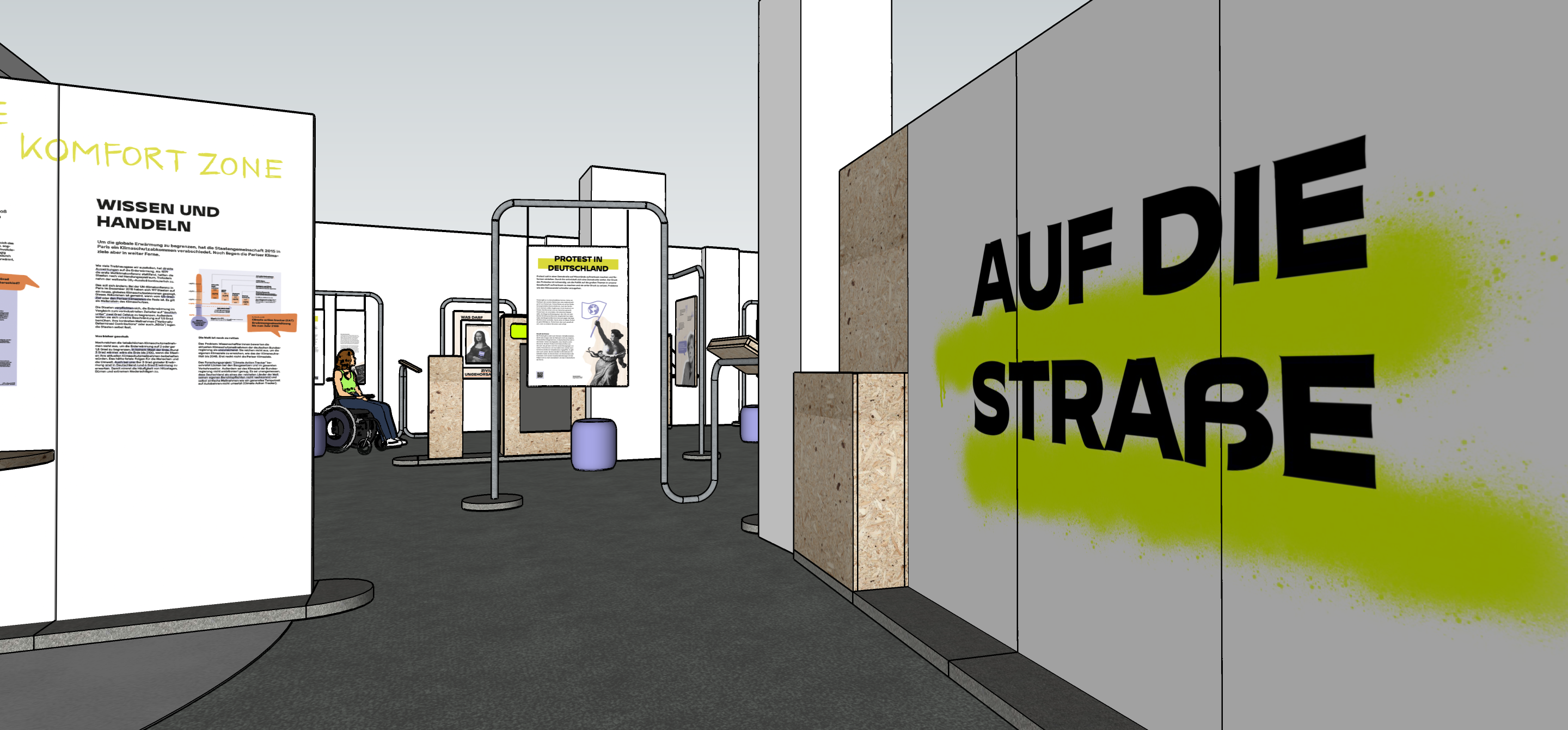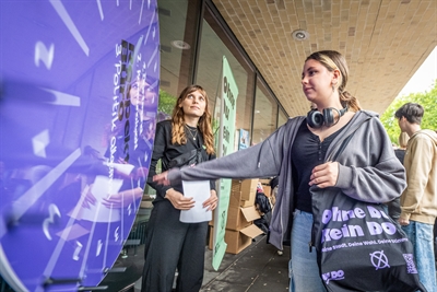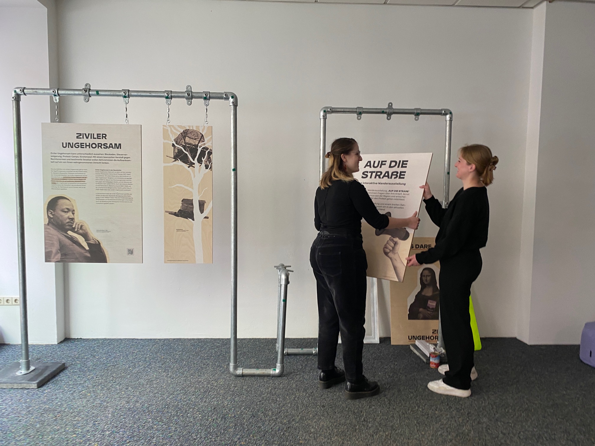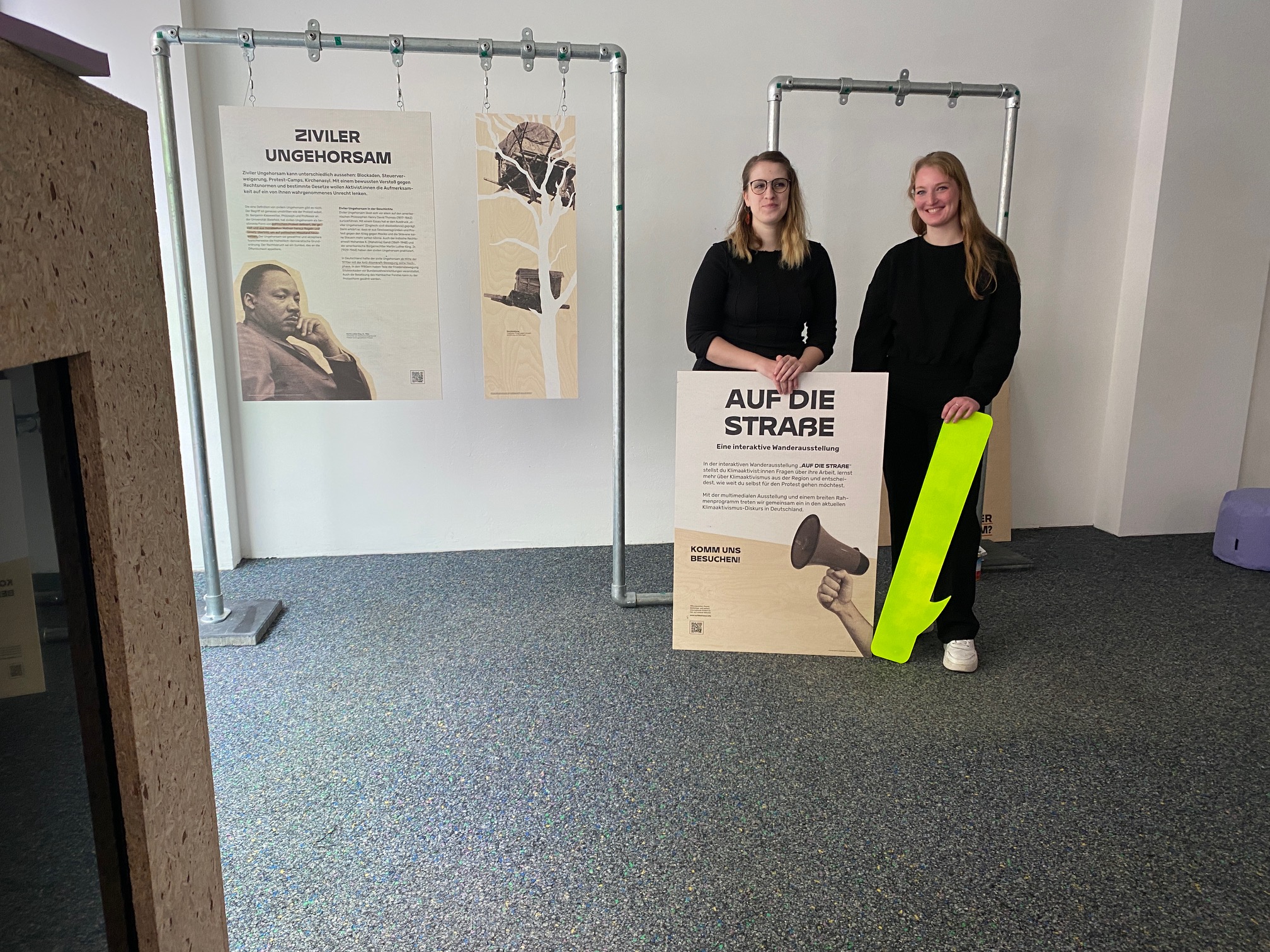 "Auf die Straße" ist eine Ausstellung über Protest von Studierenden in Zusammenarbeit mit dem MKK. (vL.: Anica Jacobsen und Taisiya Starostina)