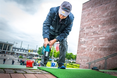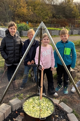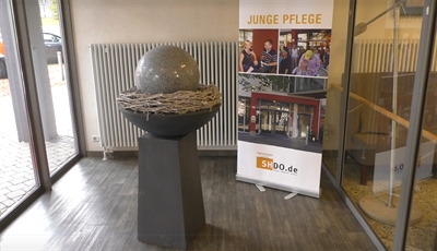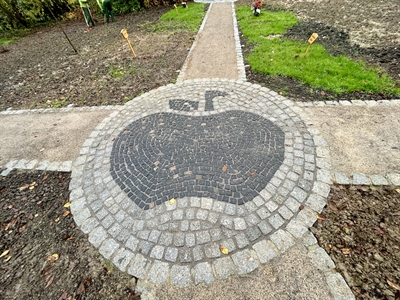 Passend zum Thema und weil's schön aussieht haben die Auszubildenden kunstvoll einen Apfel auf den Weg gepflastert.