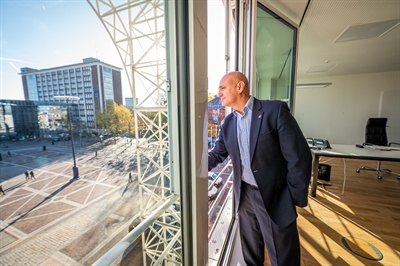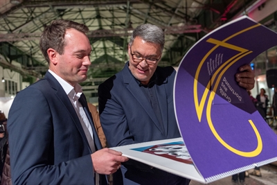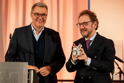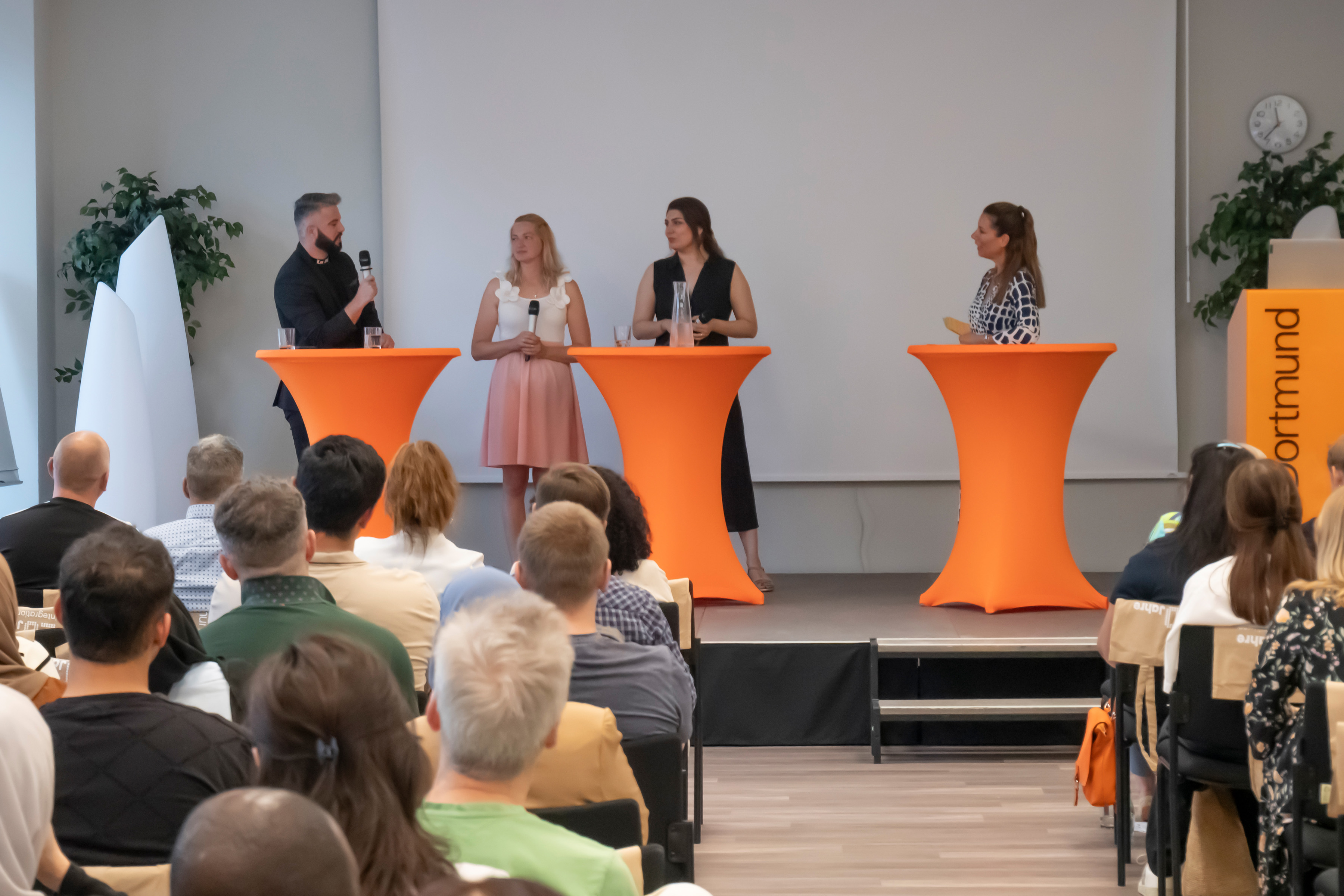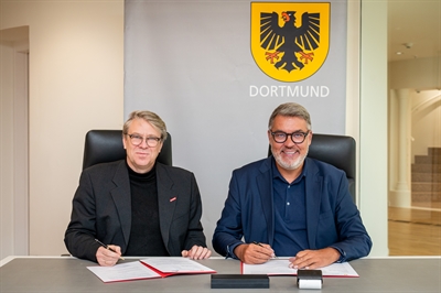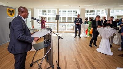 Oberbürgermeister Thomas Westphal (re) hält die Eröffnungsrede beim Markenlaunch-Event in Dortmund