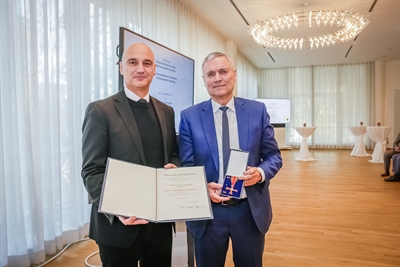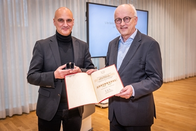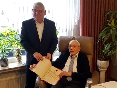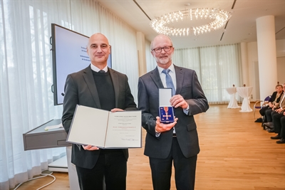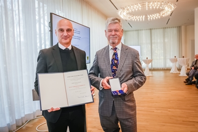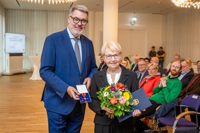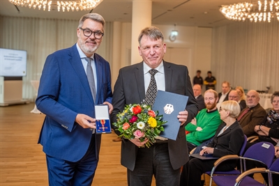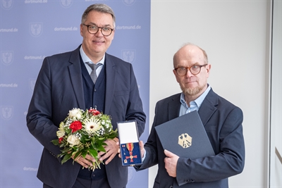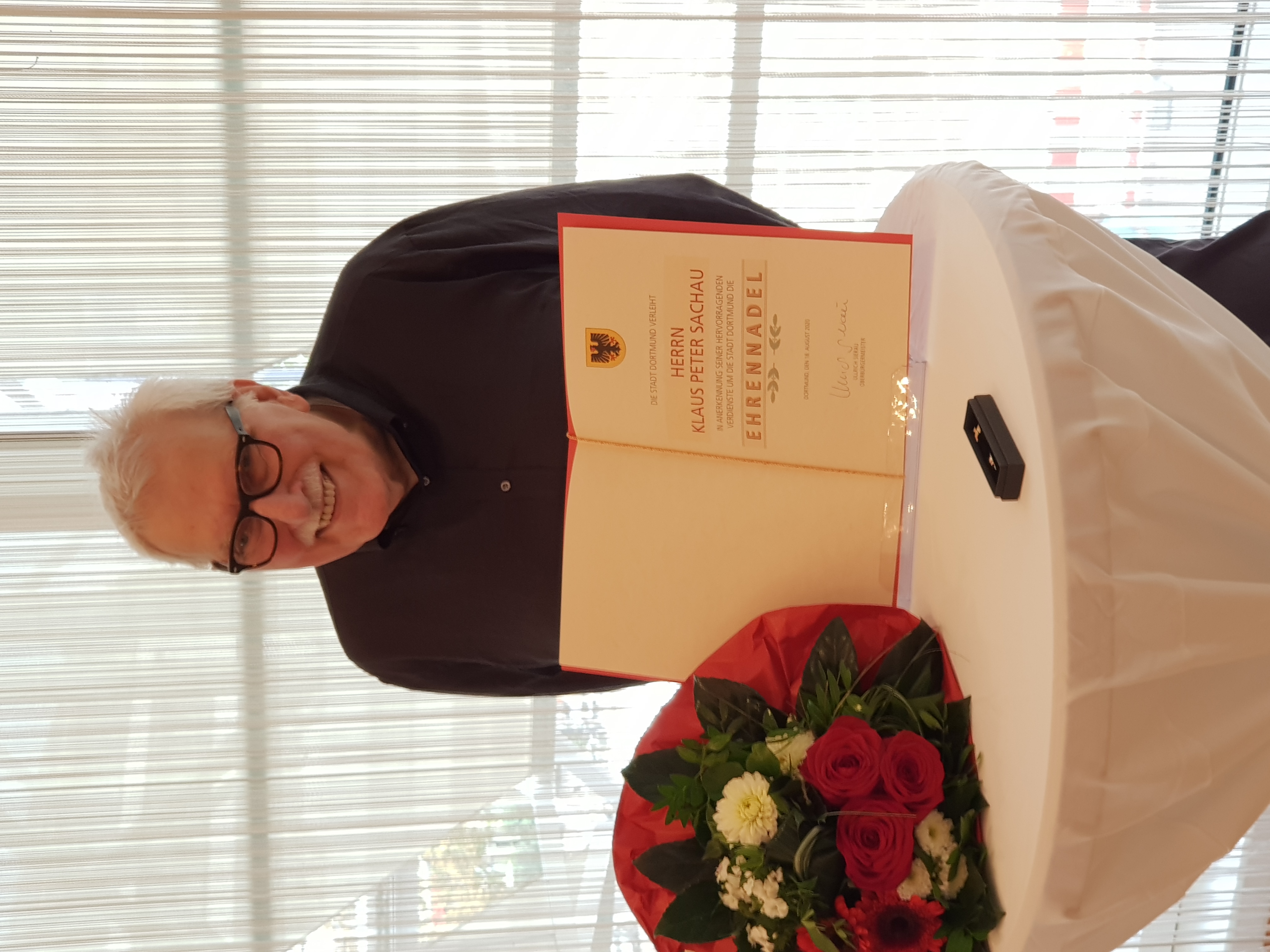 OB Alexander Kalouti überreichte Detlef Englich das Verdienstkreuz am Bande in Anerkennung seines Engagements für den Ringer-Sport.
